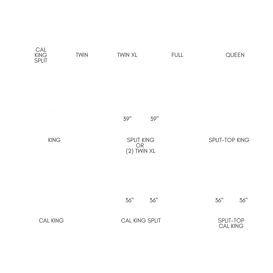 The collection includes Twin, Twin XL, Full, Queen, King, and Split King sizes, offering flexibility for all bedroom setups.