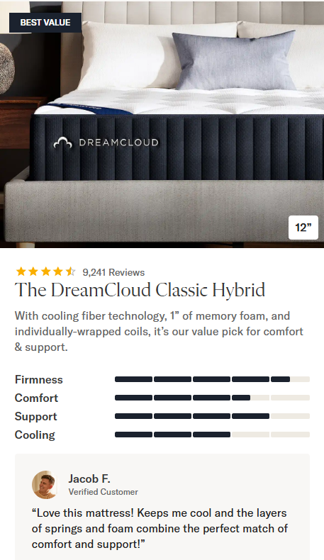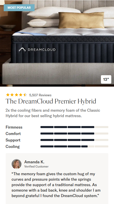 Premium materials at half the price. Experience the exceptional craftsmanship of DreamCloud mattresses, where luxury meets affordability