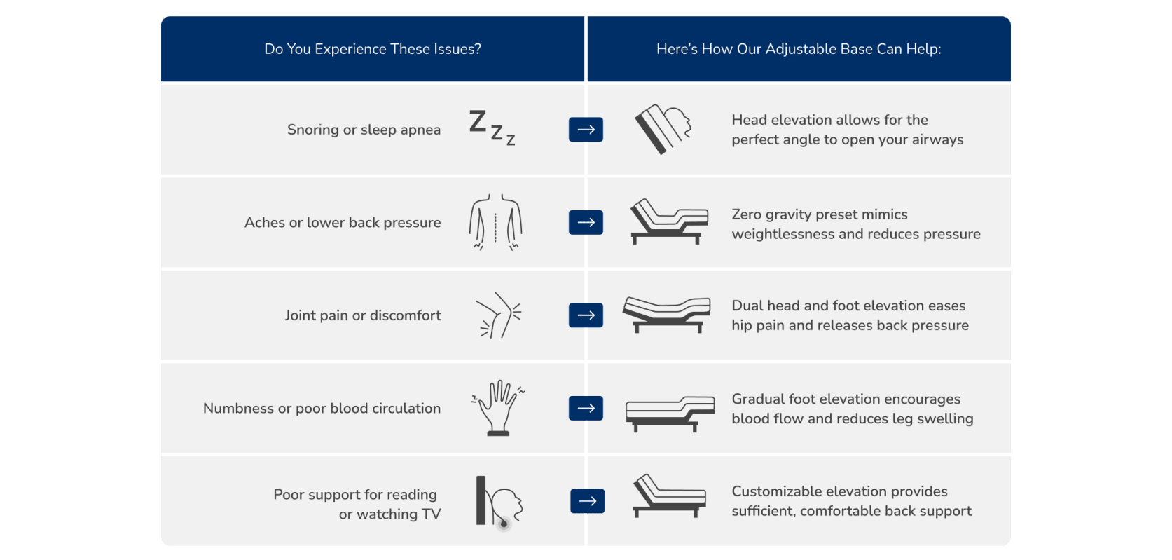 Raise and lower the head and foot of your bed with ease to find the perfect angle that helps reduce snoring, alleviate joint pain, and release back tension. Great for sleeping or simply relaxing in bed.